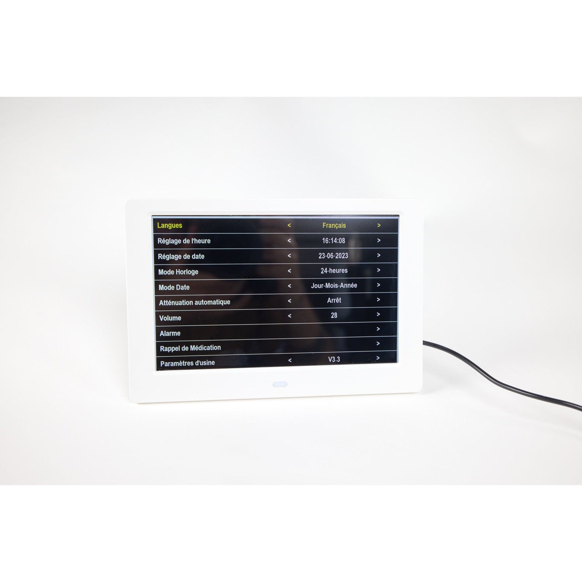 Darüber hinaus haben Sie die Möglichkeit, den ganzen Tag über Medikamentenerinnerungen einzuplanen. Die Ally Clock bietet 3 Medikamentenerinnerungen, darunter eine morgens, eine nachmittags und eine abends. Sobald der Alarm ertönt, genügt ein beliebiger Tastendruck auf der Fernbedienung, um ihn auszuschalten. Die Erinnerung bleibt aktiv, solange der Modus „aktiviert“ angezeigt wird. Wenn Sie die Medikamentenerinnerung beenden möchten, müssen Sie den Modus „deaktiviert“ wählen.