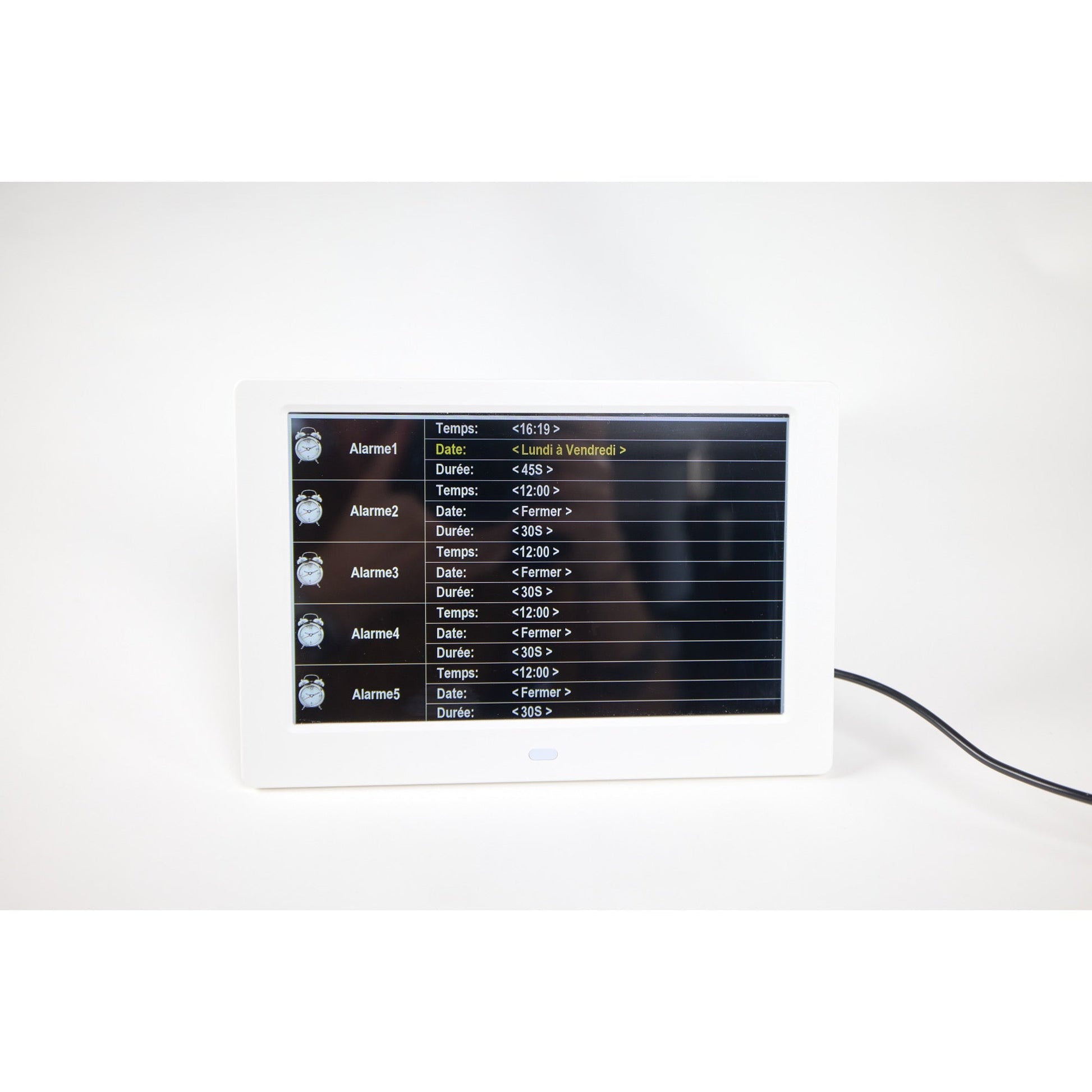 Sie haben auch die Möglichkeit, für jeden Bedarf einen Alarm einzustellen. Es können 10 Alarme aktiviert werden. Sie müssen dann nur noch die Uhrzeit und die Tage eingeben, an denen der Alarm gelten soll, beispielsweise jeden Wochentag, das Wochenende oder auch einen bestimmten Wochentag (beispielsweise für einen wöchentlichen Termin).
