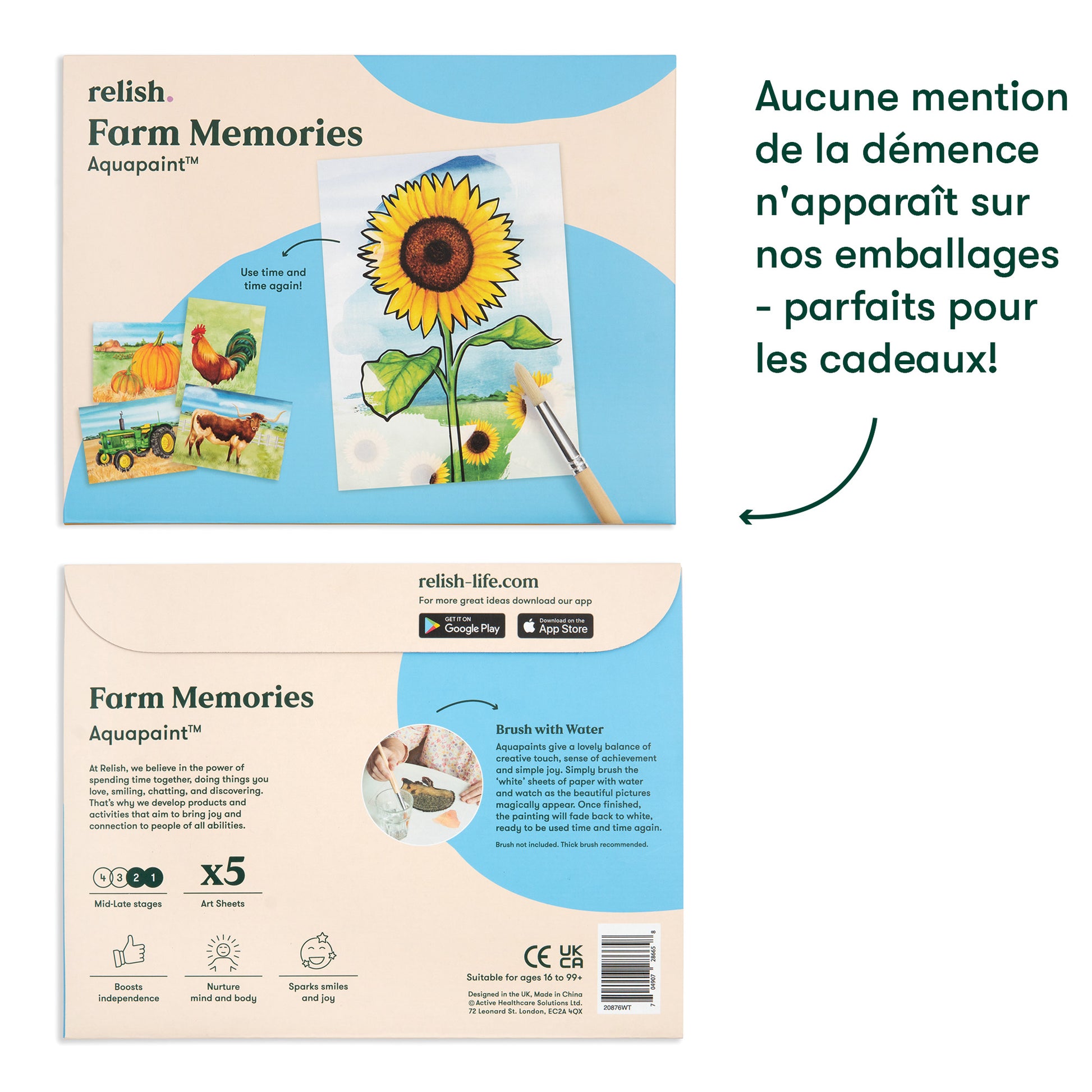 Aquapaint ist eine innovative und einzigartige Aktivität für Menschen mit kognitiven Störungen wie Demenz oder Alzheimer. Jedes Set besteht aus fünf sorgfältig ausgewählten Bildern, die zur Konversation anregen sollen. Die Leinwand ist zunächst weiß mit schwarz umrandeten Formen. Wenn das Wasser des Pinsels mit der Leinwand in Berührung kommt, kommen wunderschöne Farben zum Vorschein. Diese kreative Aktivität wurde für und mit Menschen mit Demenz entwickelt, stimuliert und vermittelt Erfolgserlebnisse.
