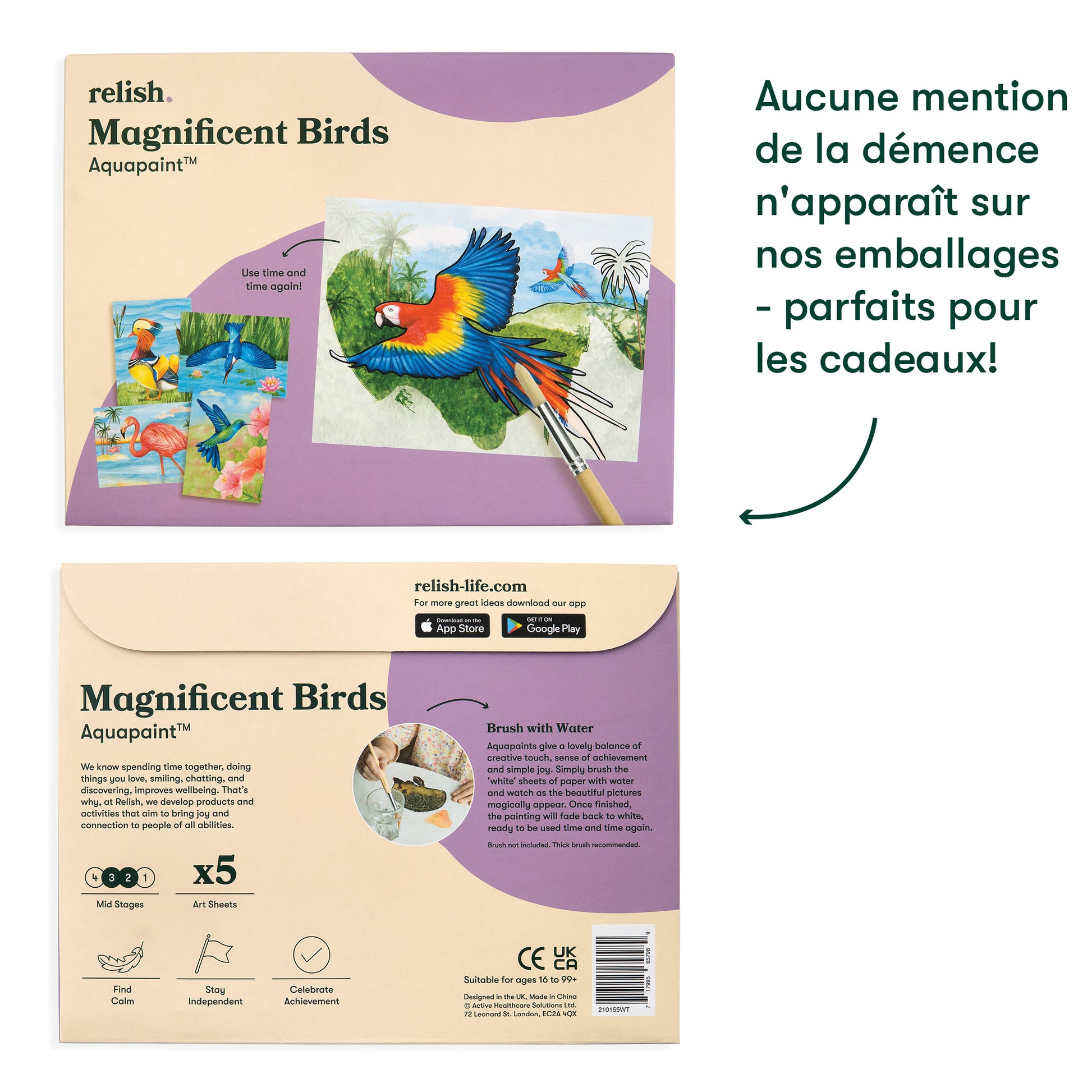 Aquapaint ist eine innovative und einzigartige Aktivität für Menschen mit kognitiven Störungen wie Demenz oder Alzheimer. Jedes Set besteht aus fünf sorgfältig ausgewählten Bildern, die zur Konversation anregen sollen. Die Leinwand ist zunächst weiß mit schwarz umrandeten Formen. Wenn das Wasser des Pinsels mit der Leinwand in Berührung kommt, kommen wunderschöne Farben zum Vorschein. Diese kreative Aktivität wurde für und mit Menschen mit Demenz entwickelt, stimuliert und vermittelt Erfolgserlebnisse.
