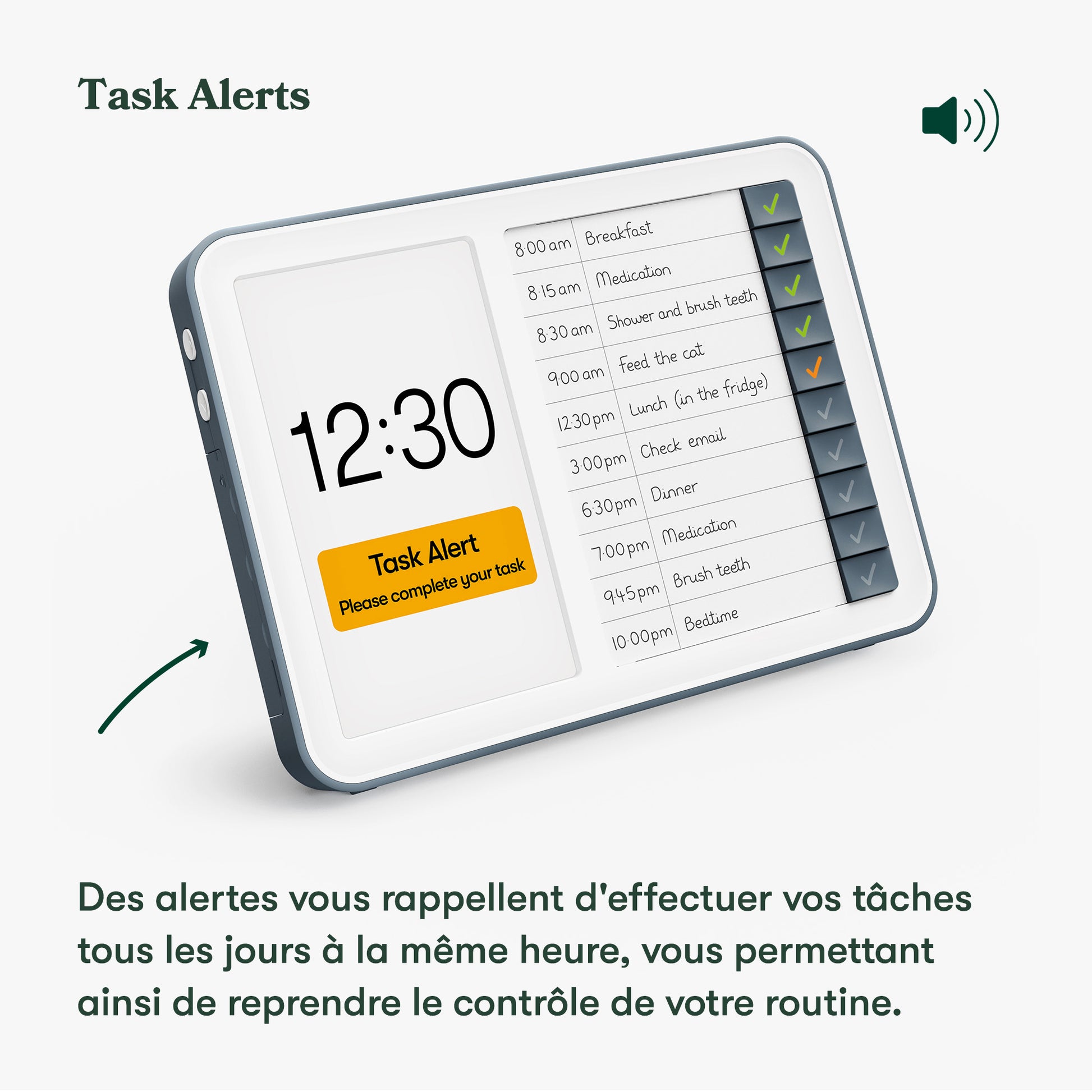 Einmal eingerichtet, ertönen die Aufgabenalarme auf diesem Gerät zur gleichen Zeit jeden Tag, um Ihnen zu helfen, eine regelmäßige Routine zu verfolgen.