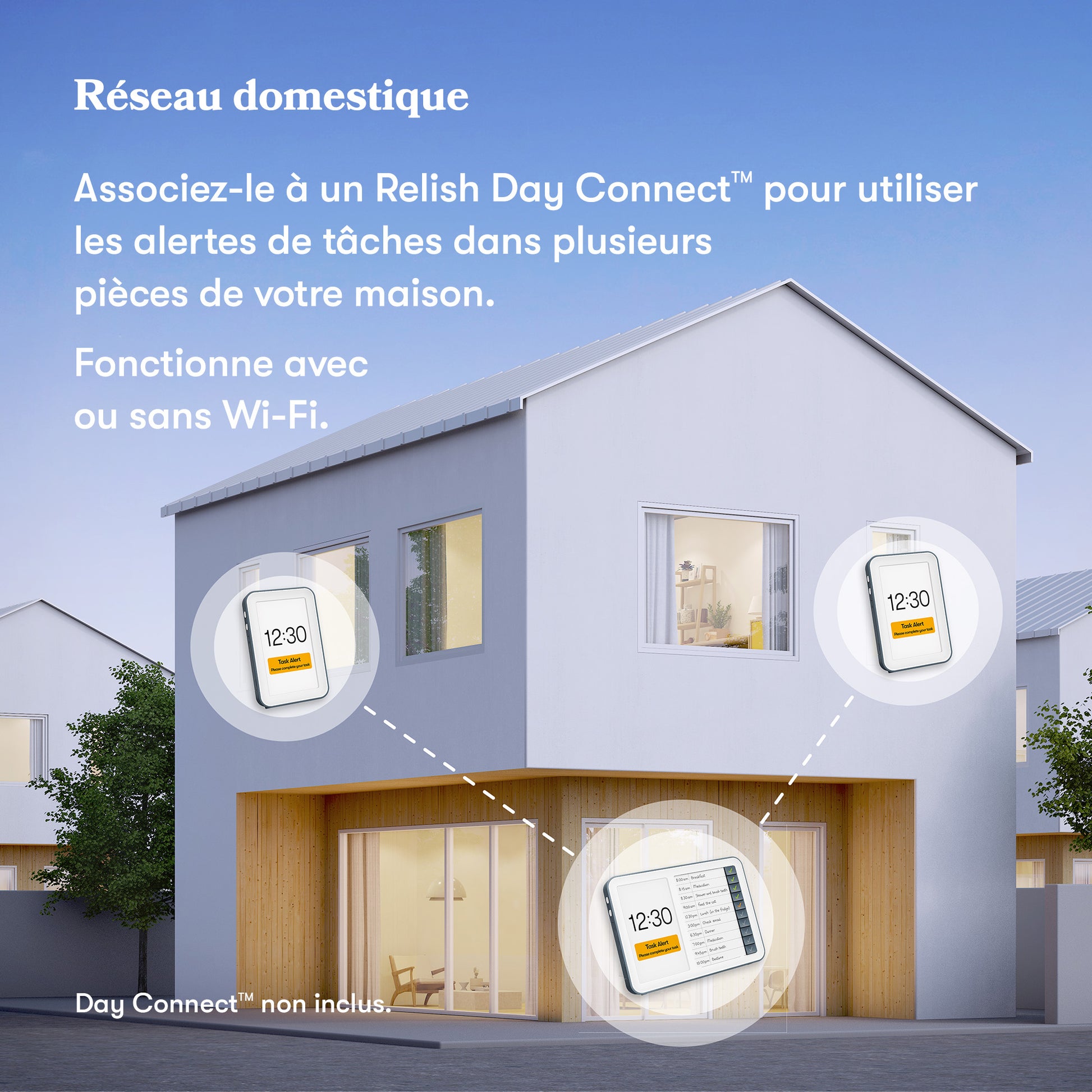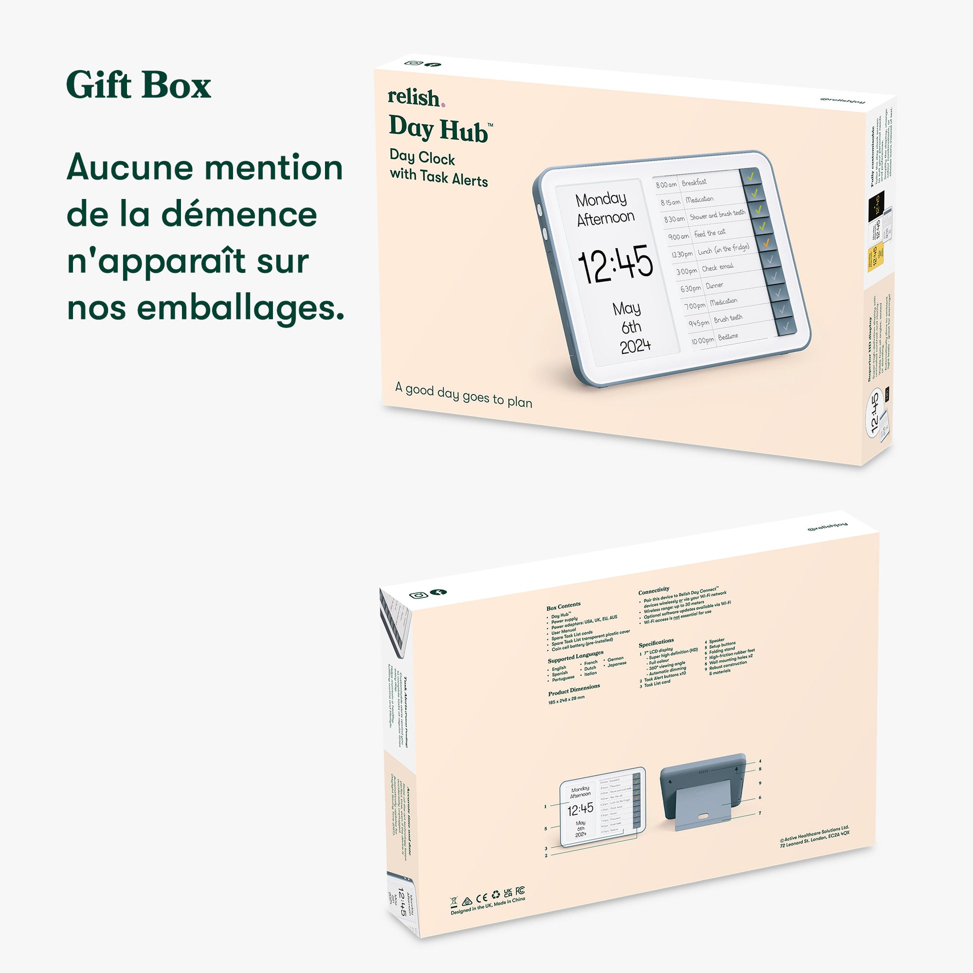 Bei Relish verstehen wir, dass Seelenfrieden wesentlich ist, weshalb der Day Hub™ perfekt für Sie oder Ihre Lieben ist, die nach Ruhe suchen. Unser Produkt bietet klare blinkende Erinnerungen, begleitet von akustischen Alarmen, um sicherzustellen, dass Sie nie eine Aufgabe verpassen. Kombinieren Sie den Day Hub™ mit dem Day Connect™, um Ihre Alarme im ganzen Haus zu hören, mehr über den Day Connect™ hier erfahren.