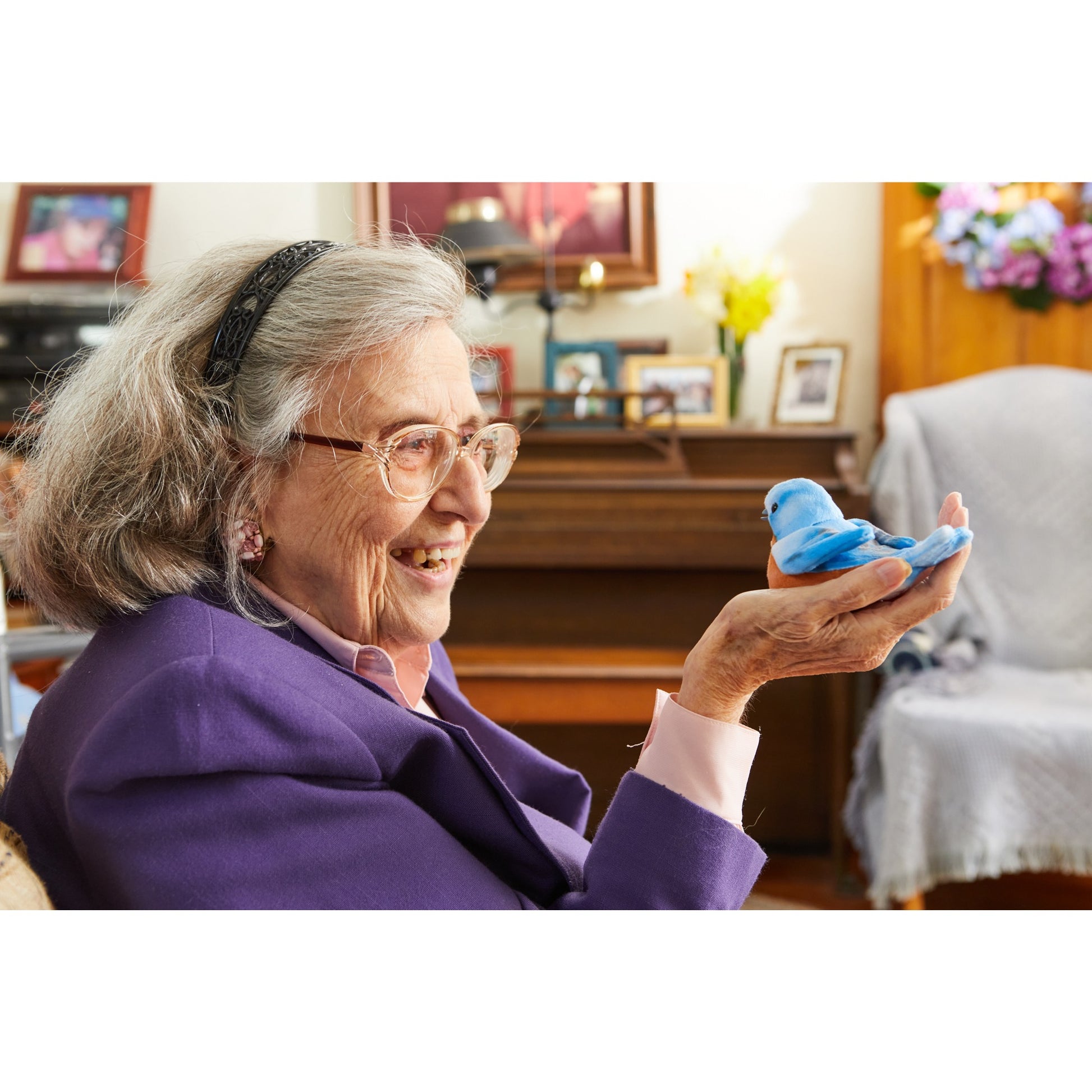 Als Gehhilfe: Wenn der interaktive Vogel auf einer Gehhilfe sitzt, erkennt er Bewegungen und singt fröhlich vor sich hin, wobei er sechs Lieder freischaltet. Wenn der interaktive Vogel erkennt, dass die Gehhilfe angehalten hat, singt er spielerisch das Lied "Vergesst mich nicht", um seinen Besitzer an seine Anwesenheit zu erinnern.