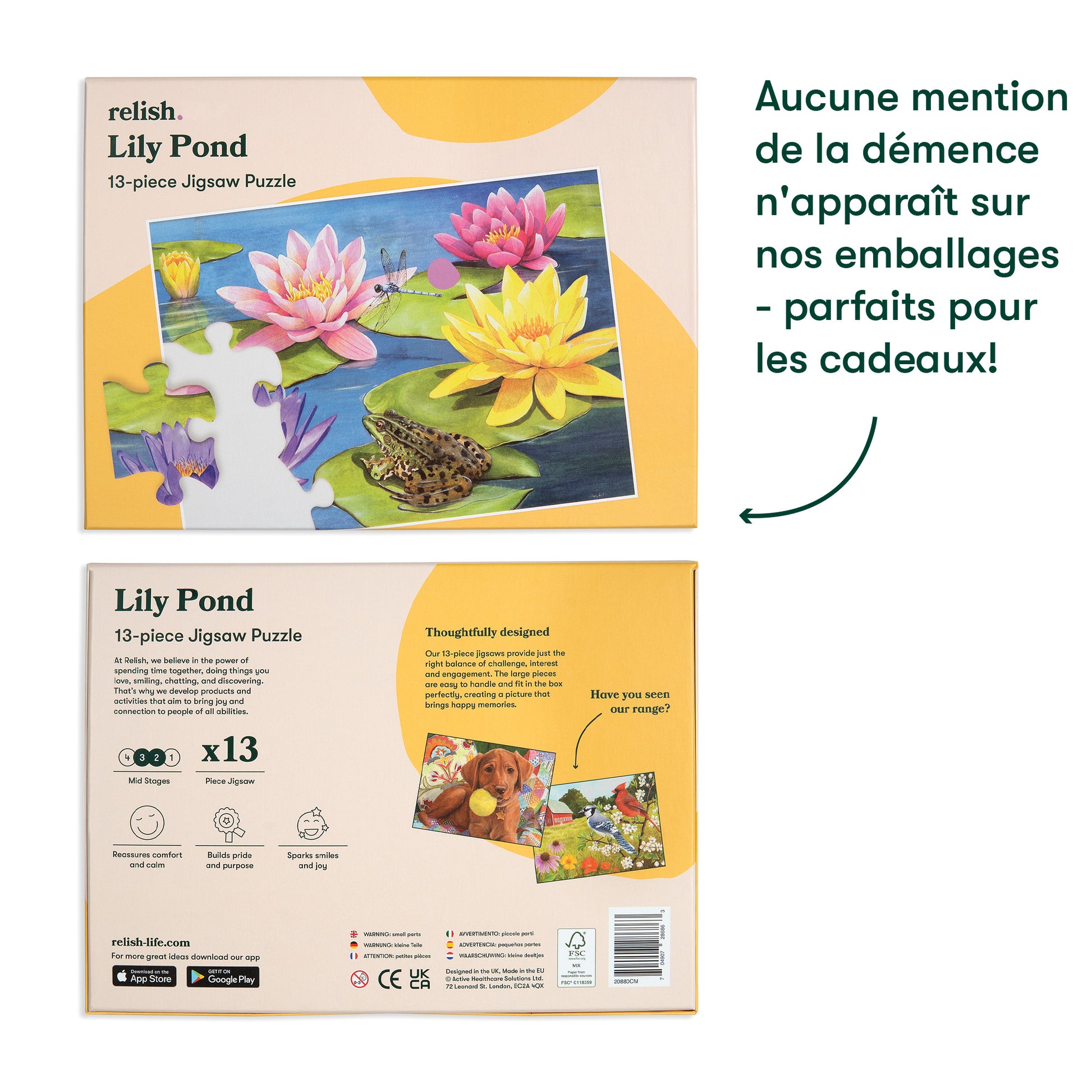 Mit seinen hellen, lebendigen Farben und der perfekten Detailliertheit ist das Lily Pond-Puzzle der perfekte Lichtblick und die perfekte Gelassenheit für Menschen mit Demenz.