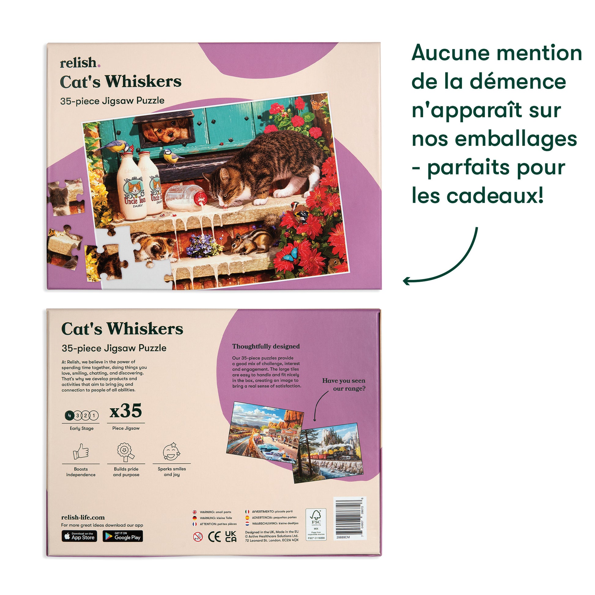 Dieses 35-teilige Puzzle ist für Menschen mit Demenz im mittleren oder späten Stadium der Krankheit geeignet. Besonders geeignet für Personen, die die 63-teiligen Puzzles nicht fertigstellen konnten. Die Stücke haben eine gute Größe und sind daher leicht zu handhaben.