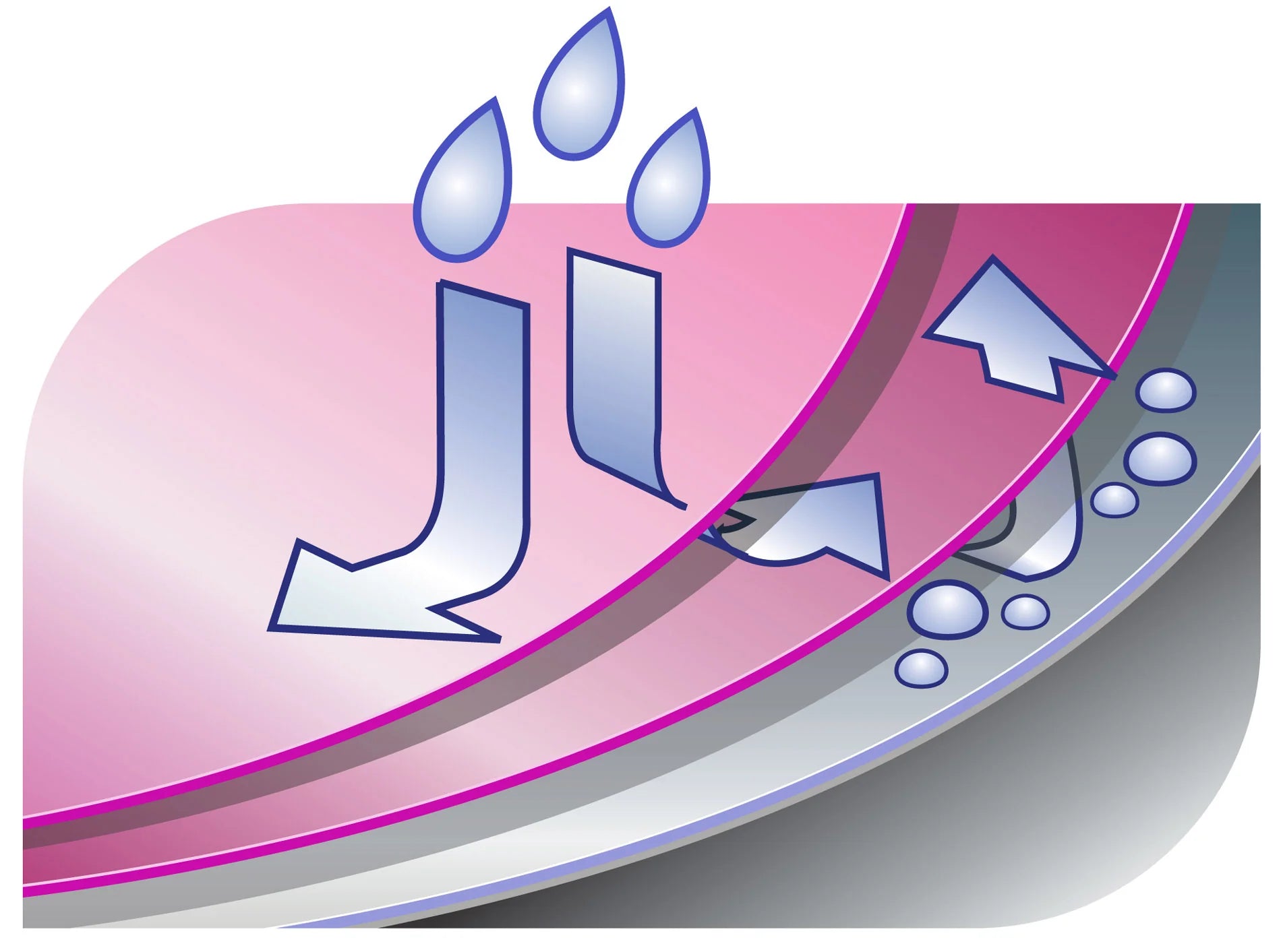 La couche extérieure absorbe efficacement les liquides, tandis que la barrière imperméable empêche toute infiltration jusqu’aux vêtements.
