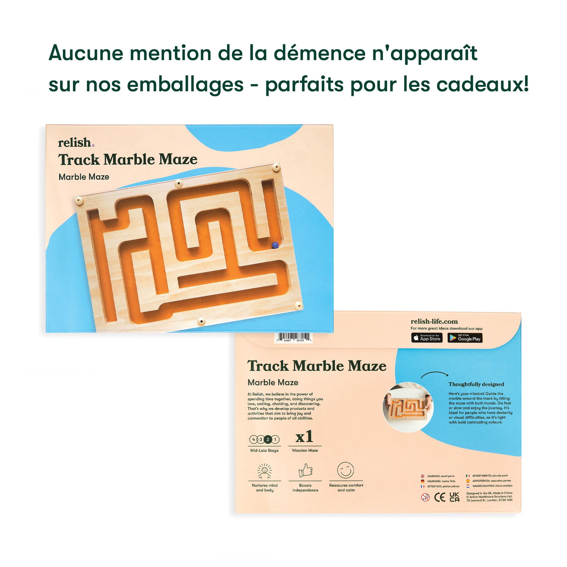 Conçu et étudié en collaboration avec des personnes atteintes de démence, ce produit présente un fort contraste de couleurs sur un grand tableau léger pour aider les personnes souffrant de déficiences visuelles et de difficultés de dextérité. Les coins incurvés et les matériaux de haute qualité sont des détails supplémentaires qui font de ce labyrinthe de billes une activité idéale pour les personnes atteintes de démence.