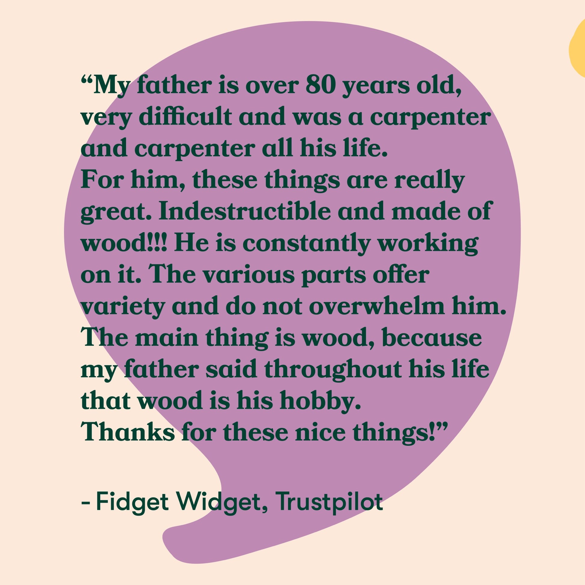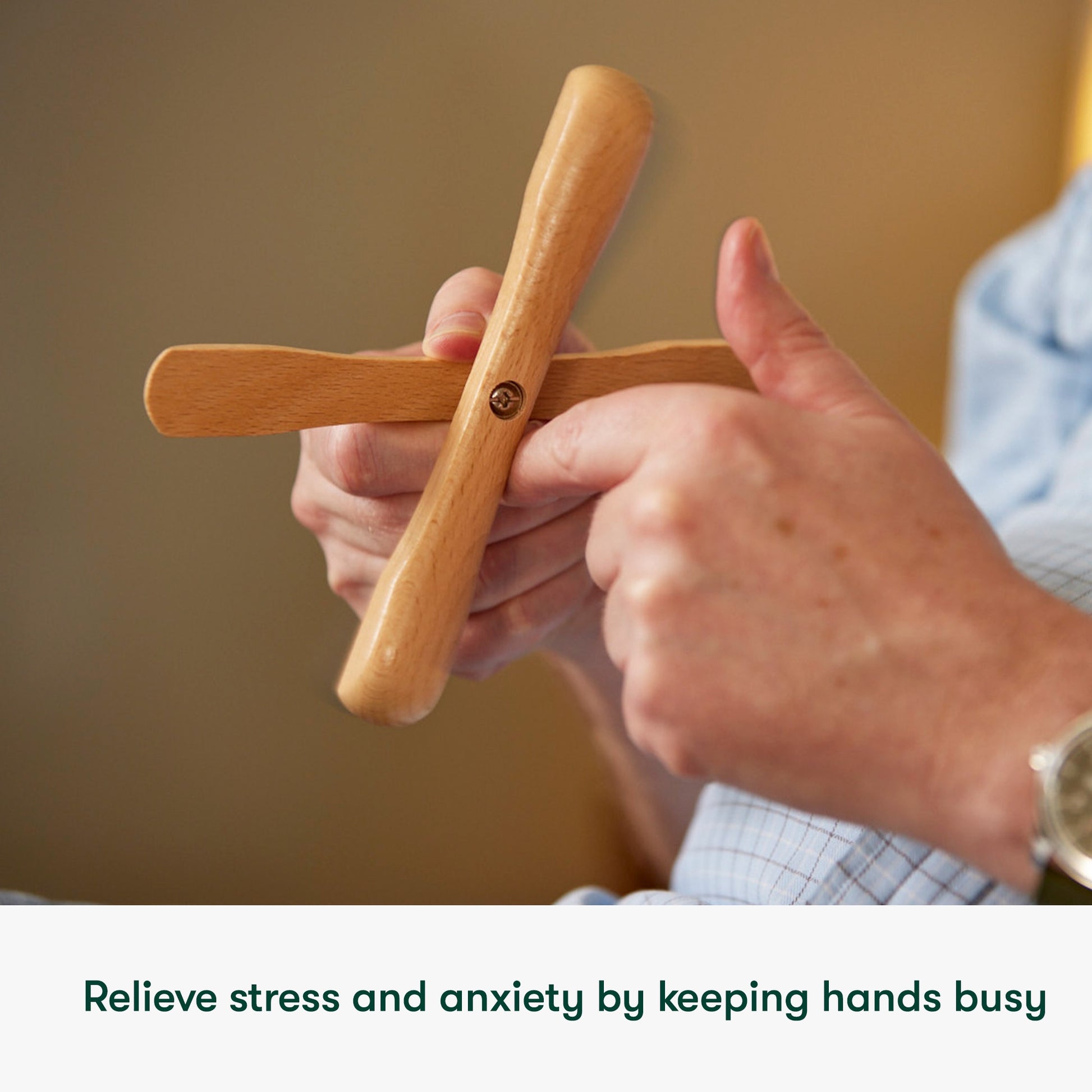 Spin est l'un des cinq widgets spécialement conçus, chacun ayant un mouvement particulier. Le design en bois lisse, qui tient confortablement dans les mains, invite les à profiter du plaisir apaisant de faire tourner les deux parties du widget dans leur main.