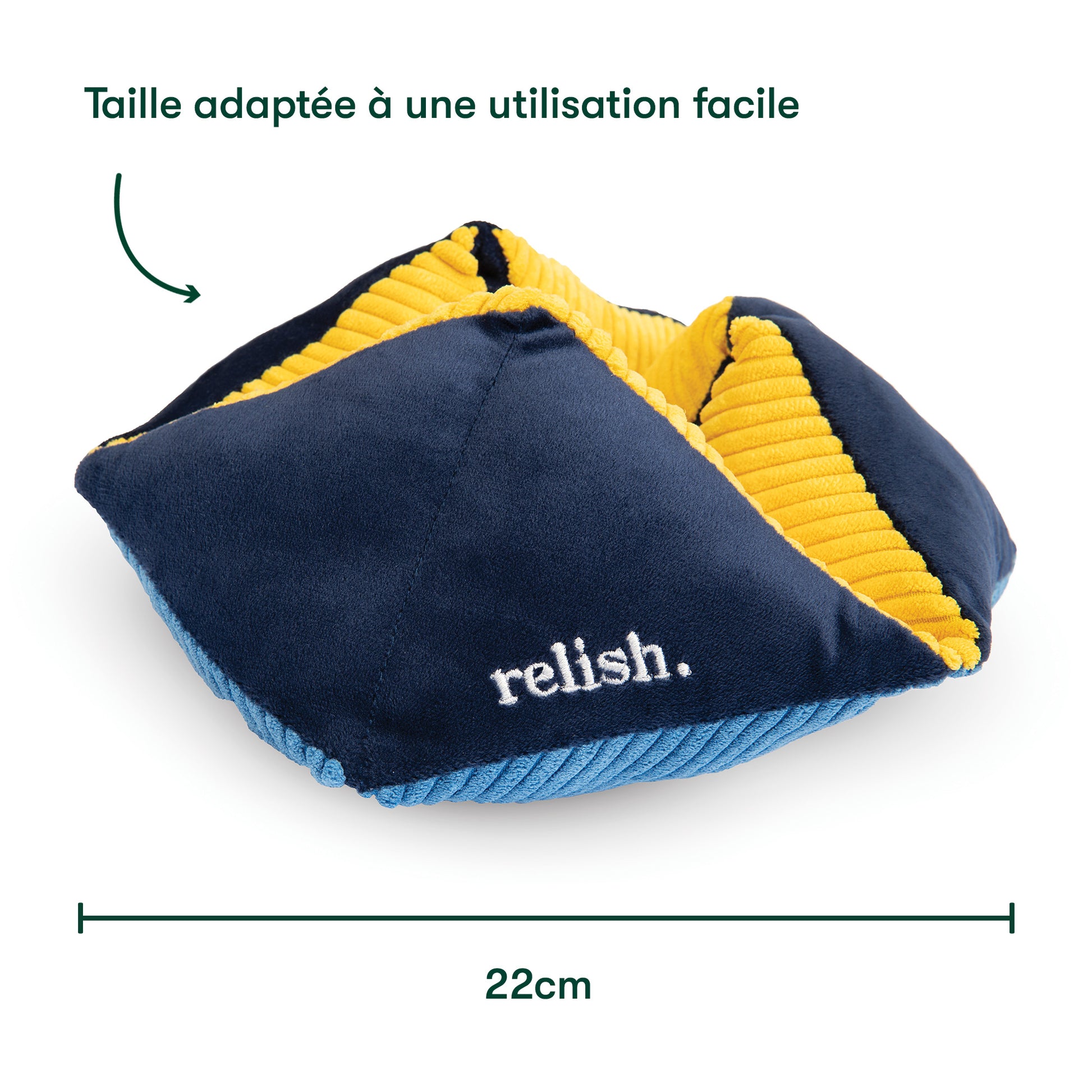 - Il présente des couleurs contrastées avec un côté bleu, un côté marine et un côté jaune pour une plus grande variété.